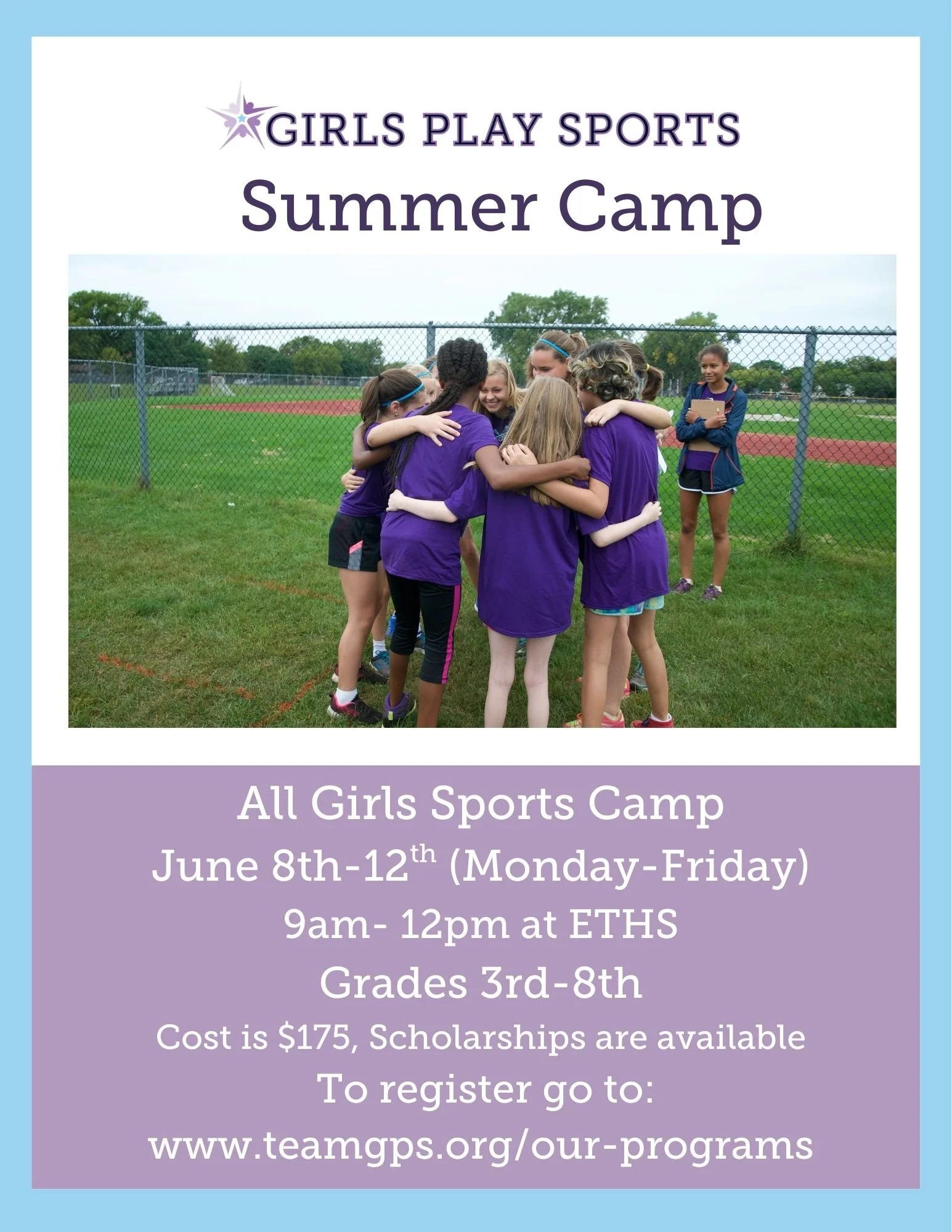 Girl’s Play Sports is dedicated to fostering leadership skills and confidence in girls through sports. The program engages girls grades 3-8 in sports without the long term and expensive commitment.